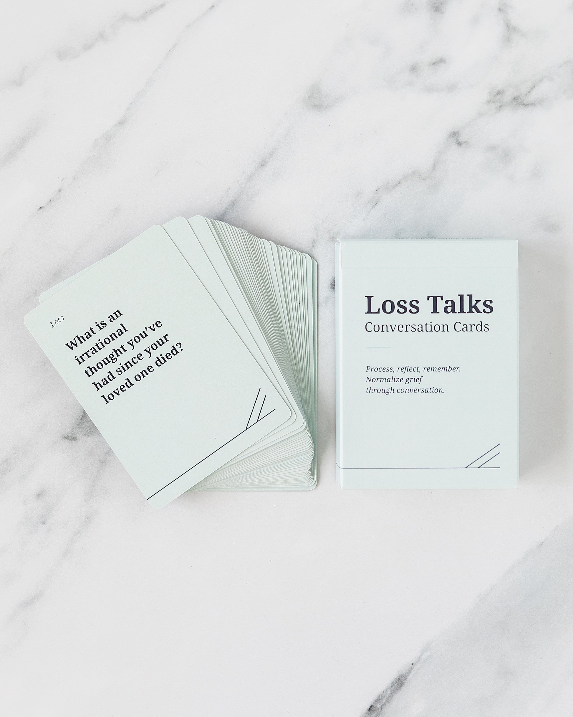Loss Talks Conversation Cards empower grievers and their loved ones with prompts to encourage meaningful conversations about memories and loss.